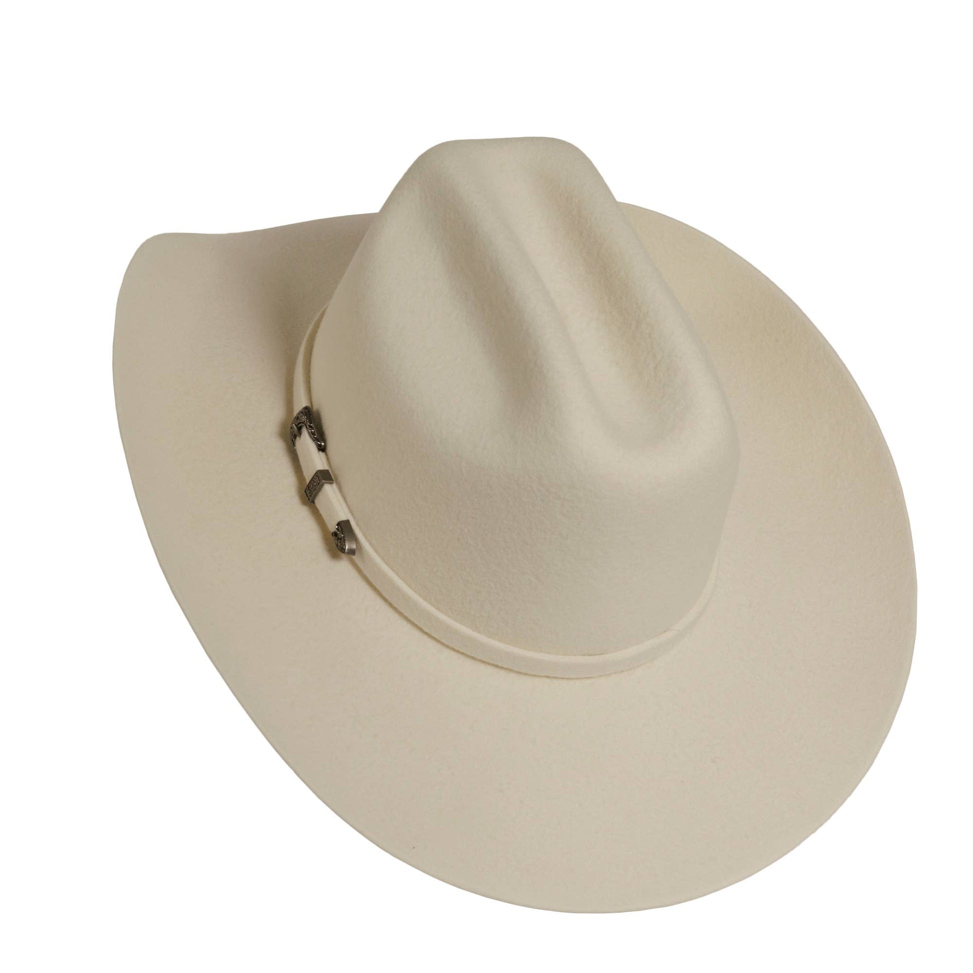 Felt Cowboy Hat offers a refined western look with a bold edge. Made from midweight Australian wool felt, this classic cattleman hat features a felt band with a three-piece buckle, perfect for men seeking timeless cowboy style.