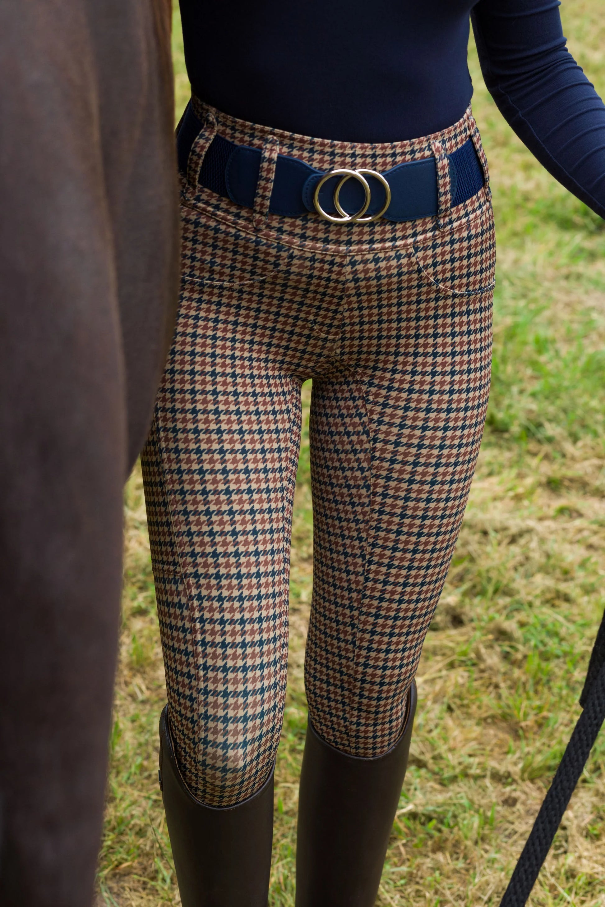 A twist on our original blockbuster breech, English Houndstooth is the classic pattern reimagined in warm hues of tan, brown, and navy. You'll feel like an old-world heroine in these distinct & stunning breeches.