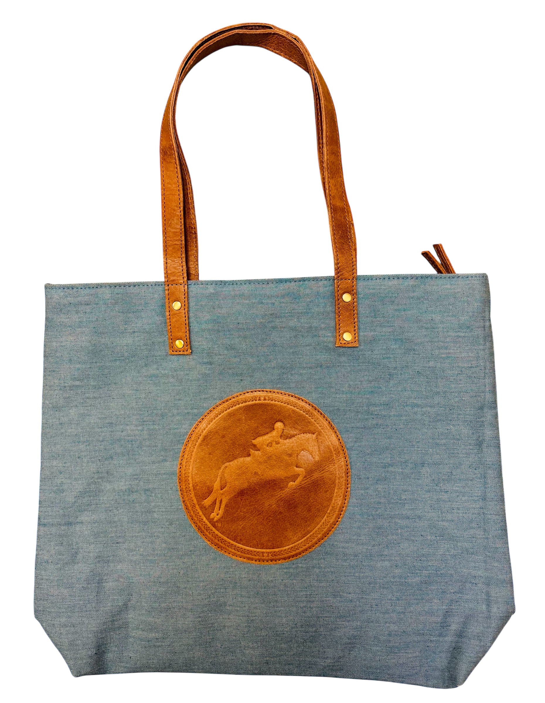 Introducing the Tucker Tweed Equestrian Barn Bag made with garment-dyed heavy duty canvas or NEW DENIM, featuring two-tone, remnant leather accents. Responsibly and resourcefully made by hand, this is the perfect tote bag for carrying essentials into the barn, away from the market and around the show ground. Durable and practical with reinforced stitching, this is the ideal bag for the active equestrian.