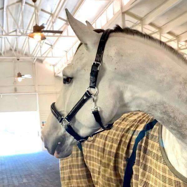 Vegetable tanned Italian leather, embossed and treated to create the most gorgeous Patent Croc Padded Halter.