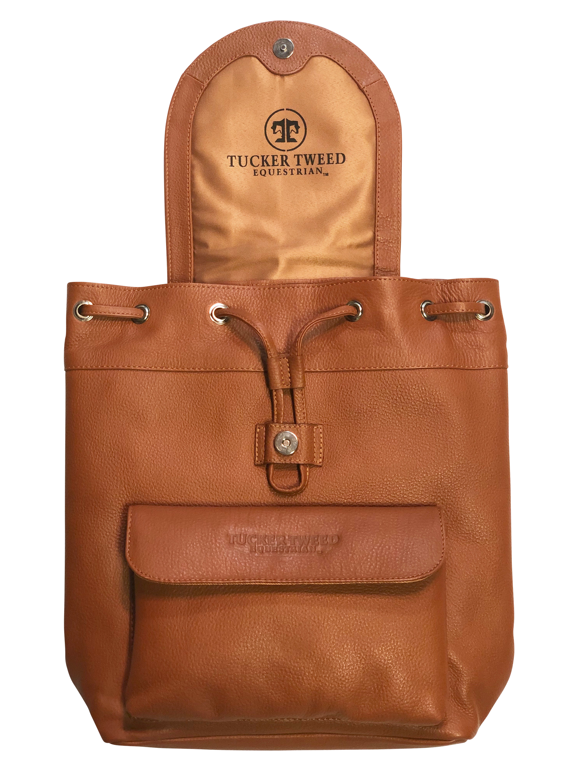 Introducing our eighth edition to the Tucker Tweed stable, named after the Brandywine Horse Show at Devon. Our most luxuriously supple leather yet, this fashion-forward debut is all about comfort, style and security. Featuring adjustable and wide shoulder straps, reinforced leather top handle for easy carry, front located cell phone pocket with zipper and magnet snap. Thoughtfully designed with drawstring close and additional magnet latch.