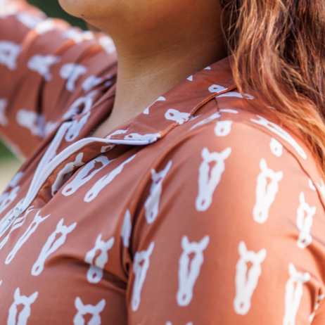 This particular Limited Edition color of our DDF print is named after Beth, who is a long-time friend and client of Ally’s. Beth’s horse Omega has been in Ally’s dressage training program for 2 years, and happens to look particularly dashing in rust!