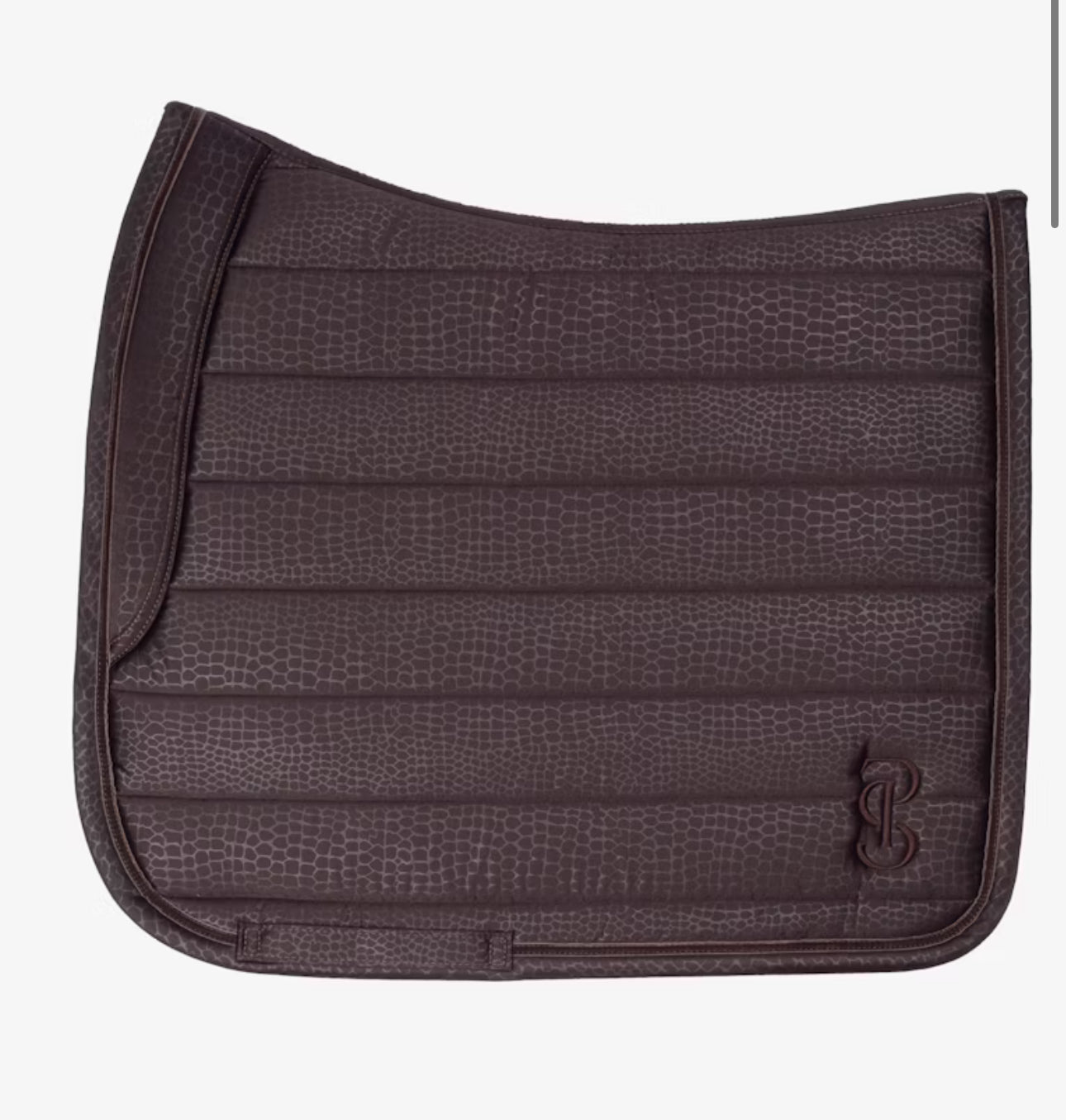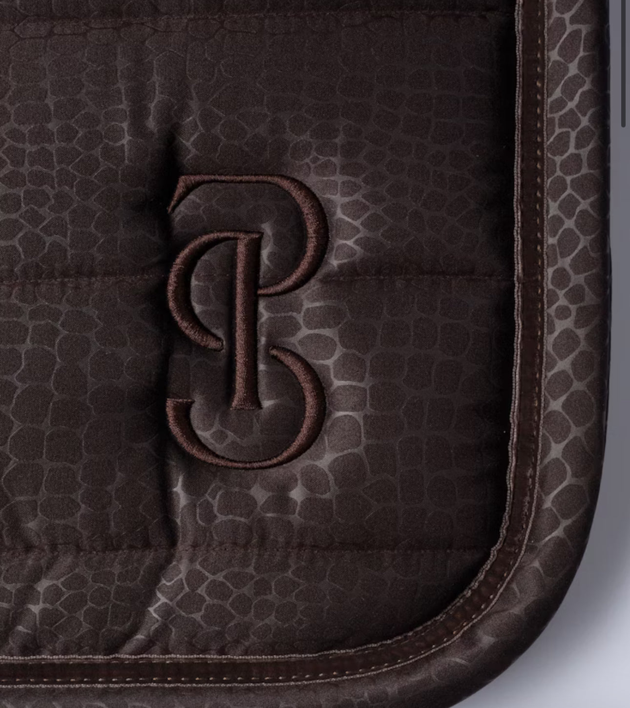 The saddle pad’s anatomically optimized shape provides additional clearance for the withers, offering improved freedom of movement for the horse. Featuring stop cushions to prevent slipping, it stays securely in place, ensuring a stable fit during rides. The shock-absorbing padding provides excellent stability, while the quick-dry lining promotes fast drying after use, keeping your horse comfortable and dry. A signature PS quote is elegantly embroidered along the spine, adding a touch of sophistication. * Outer fabric: Dirt-repellent, snake-patterned matte satin ideal for equestrian gear * Stop cushions to prevent saddle slipping * Metallic thread quote embroidered along the spine for a unique design * Medium-thick padding for superior comfort and shock absorption * Super quick-dry lining to wick away moisture during intense riding sessions * Tone-on-tone embroidery with the PS logo for added elegance * Perfect for riders who value both style and performance, this saddle pad ensures your horse’s comfort and supports active equestrian training, whether in the arena or on trail rides.