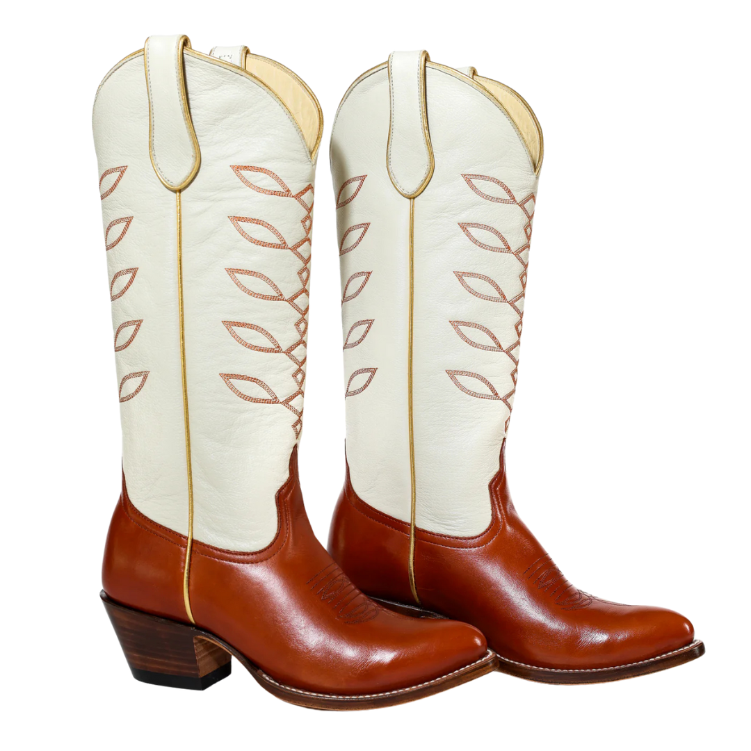 Go Horns! Beautiful "orange you glad you went to UT" burnt orange leather with cream. Western longhorn-esque stitching, and gold piping.