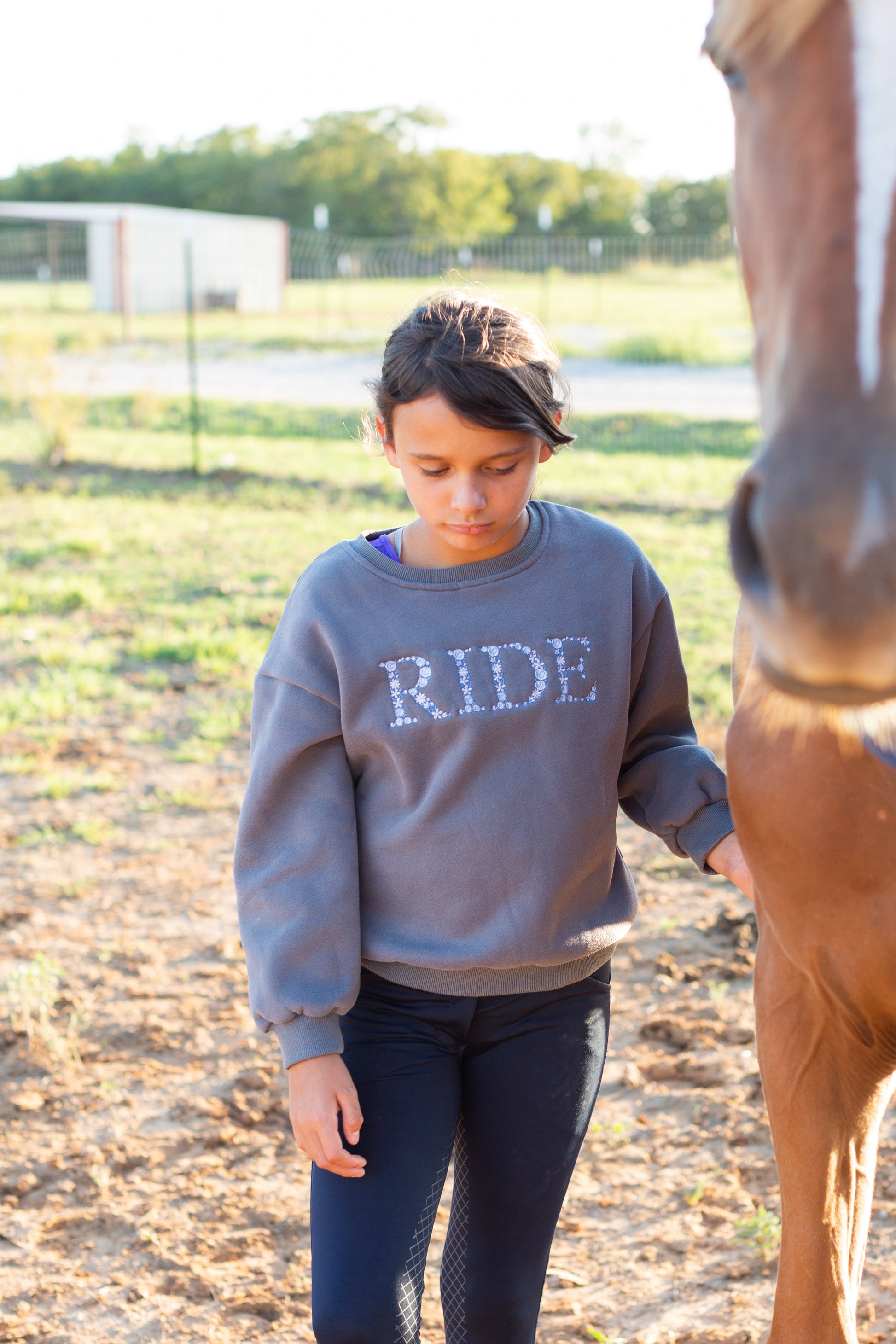 Grey "RIDE" Sweatshirt - Blue Ombre