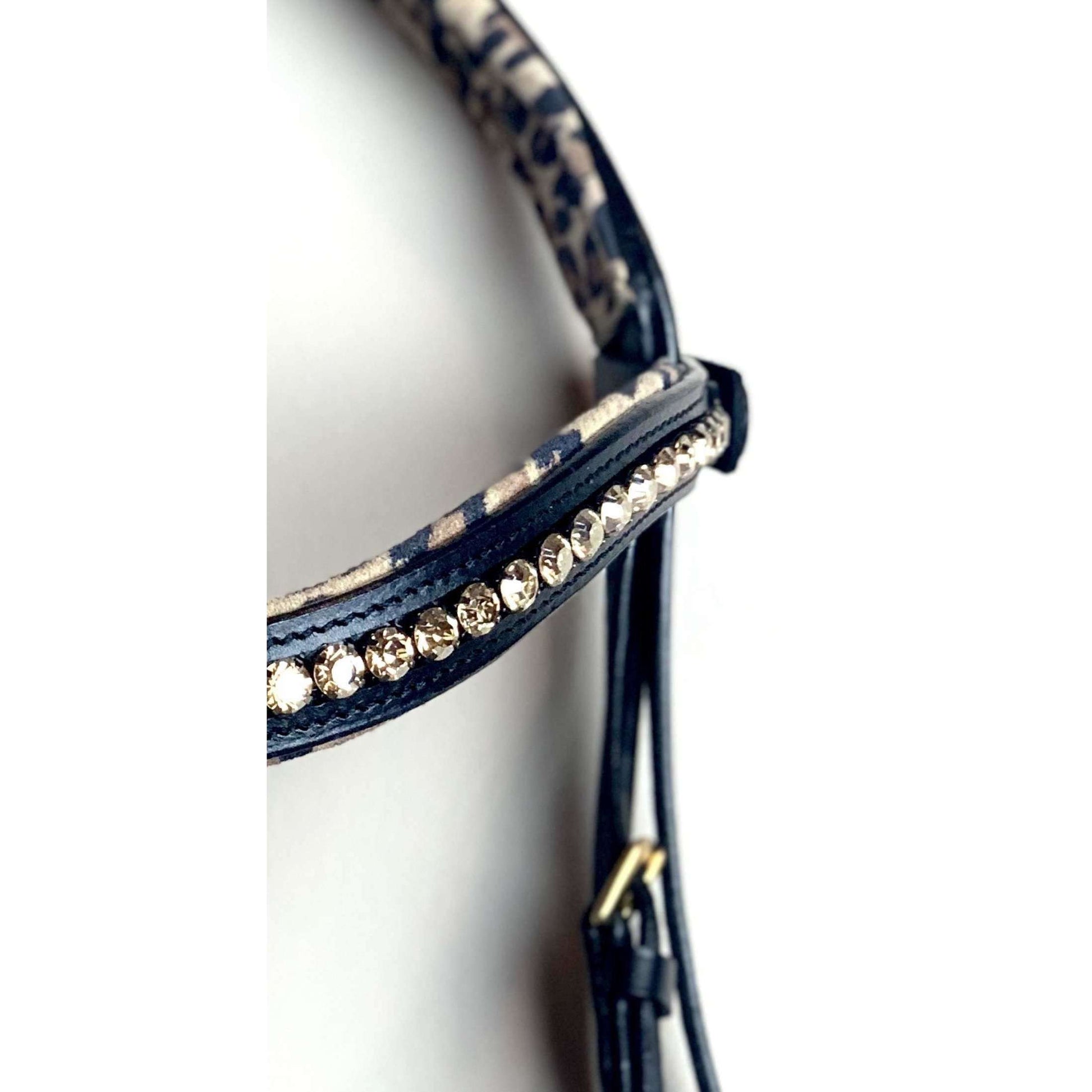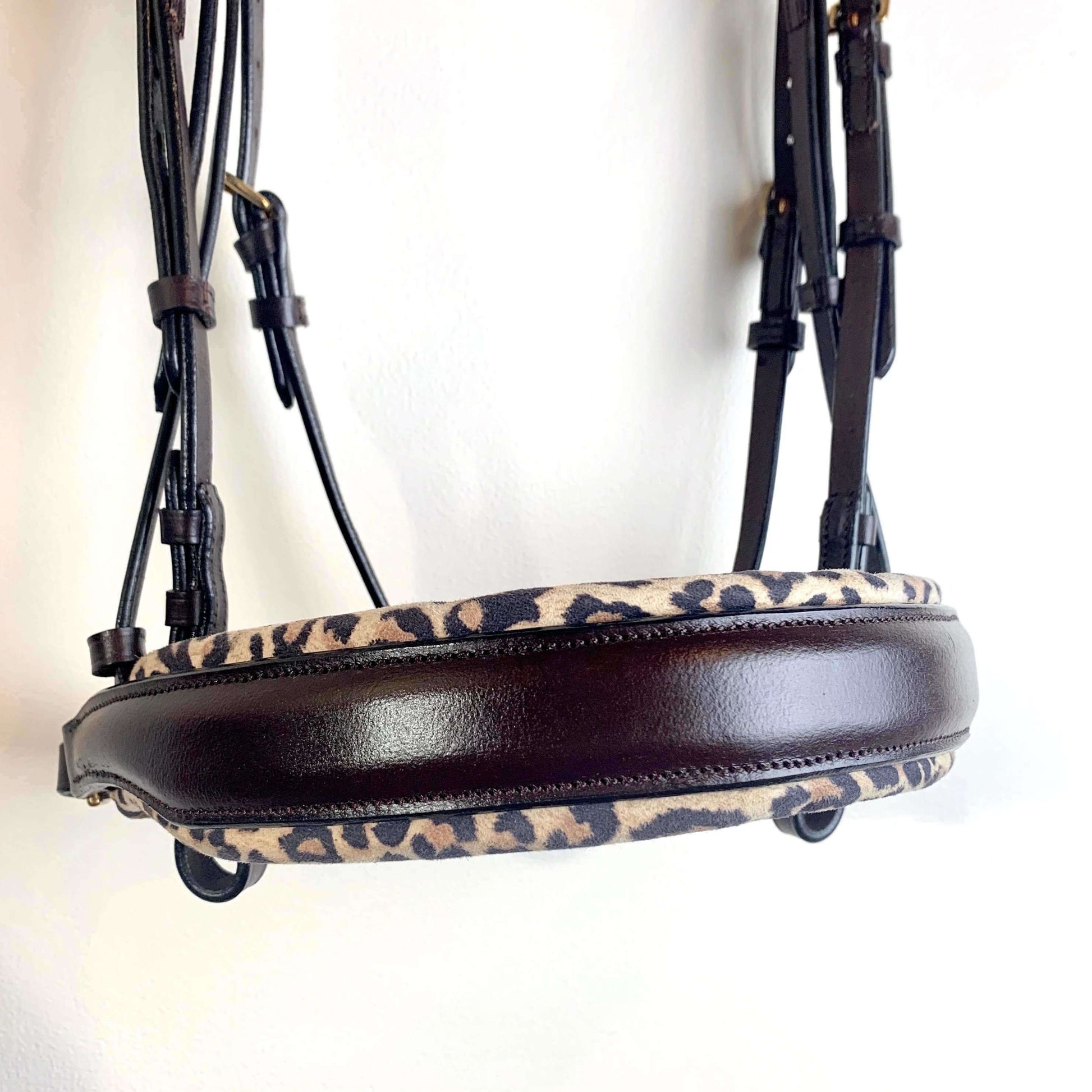 The bridle comes with a single color Crystal browband with brown leather and leopard print padding to match rest of bridle.