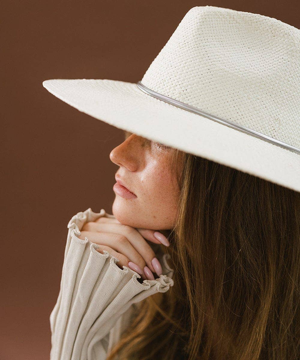 This band features a high shine thick herringbone chain pattern. It doubles as a sleek necklace. This band comes in one size and adjusts to fit any hat.