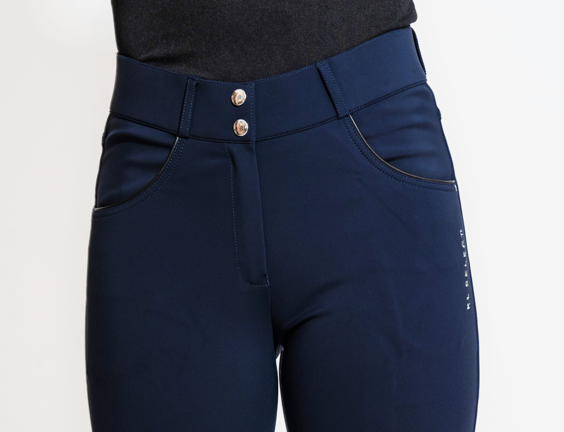 With their subtle sophisticated details and high-tech compression fabric, the KL Select Gabrielle Breech is destined to be your new favorite. The new Gabrielle Breech features high-tech compression fabric with 4-way stretch for optimal movability and a sleek figure-flattering look! The mid-weight material offers breathability, moisture absorption, and fast drying. The Gabrielle’s features include two front slide in pockets accented by silver grommets, two decorative back zipper pockets, contrasting piping, a silicone full seat, and Lycra sock bottoms.