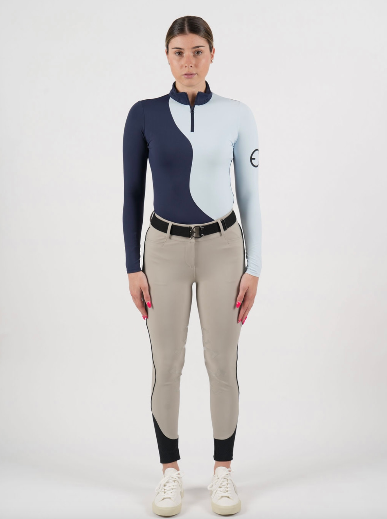 Absolutely beautiful training top that was created and carefully designed for the rider to feel comfortable, confident and eye catching. This all weather LENNA shirt will keep you pleasant in the summer because of the moisture wicking fabric and snug as an under-layer in the winter. Choose from three color combinations.