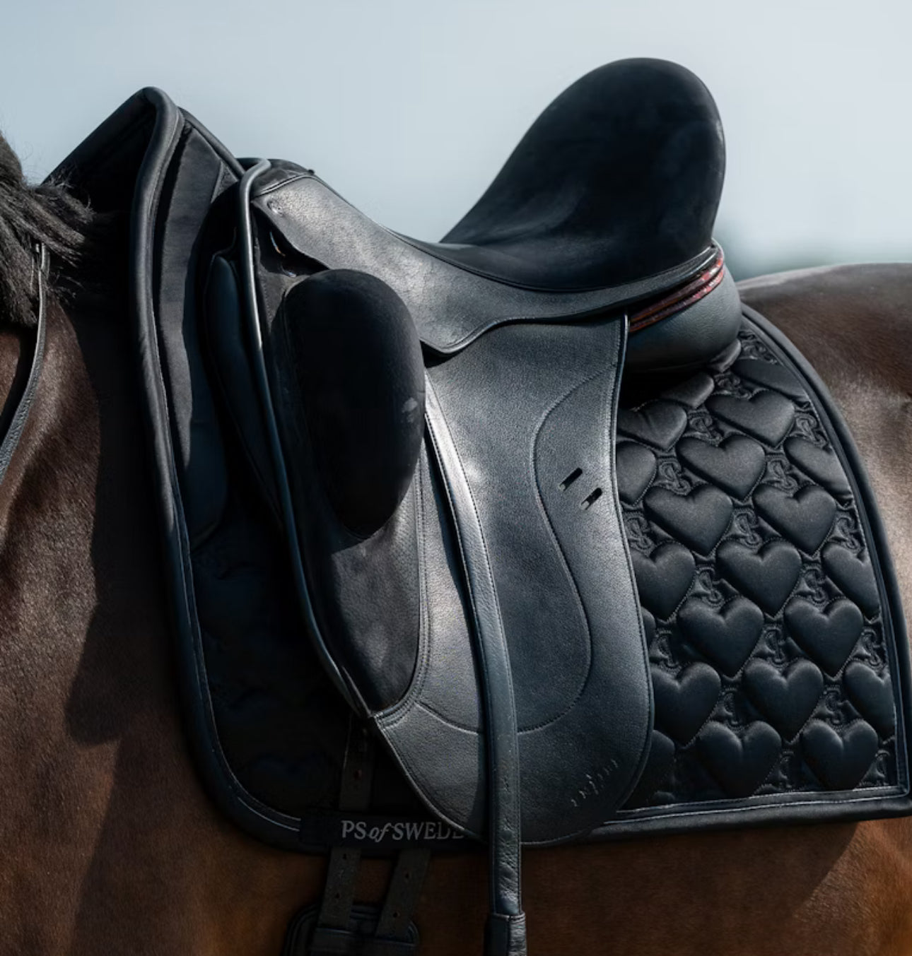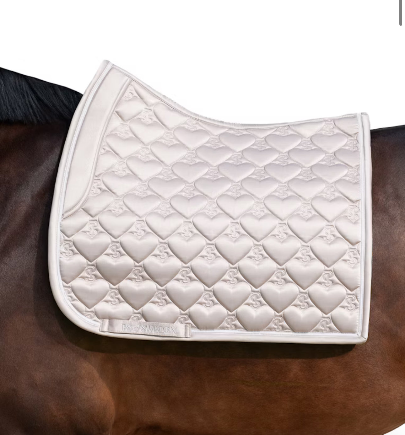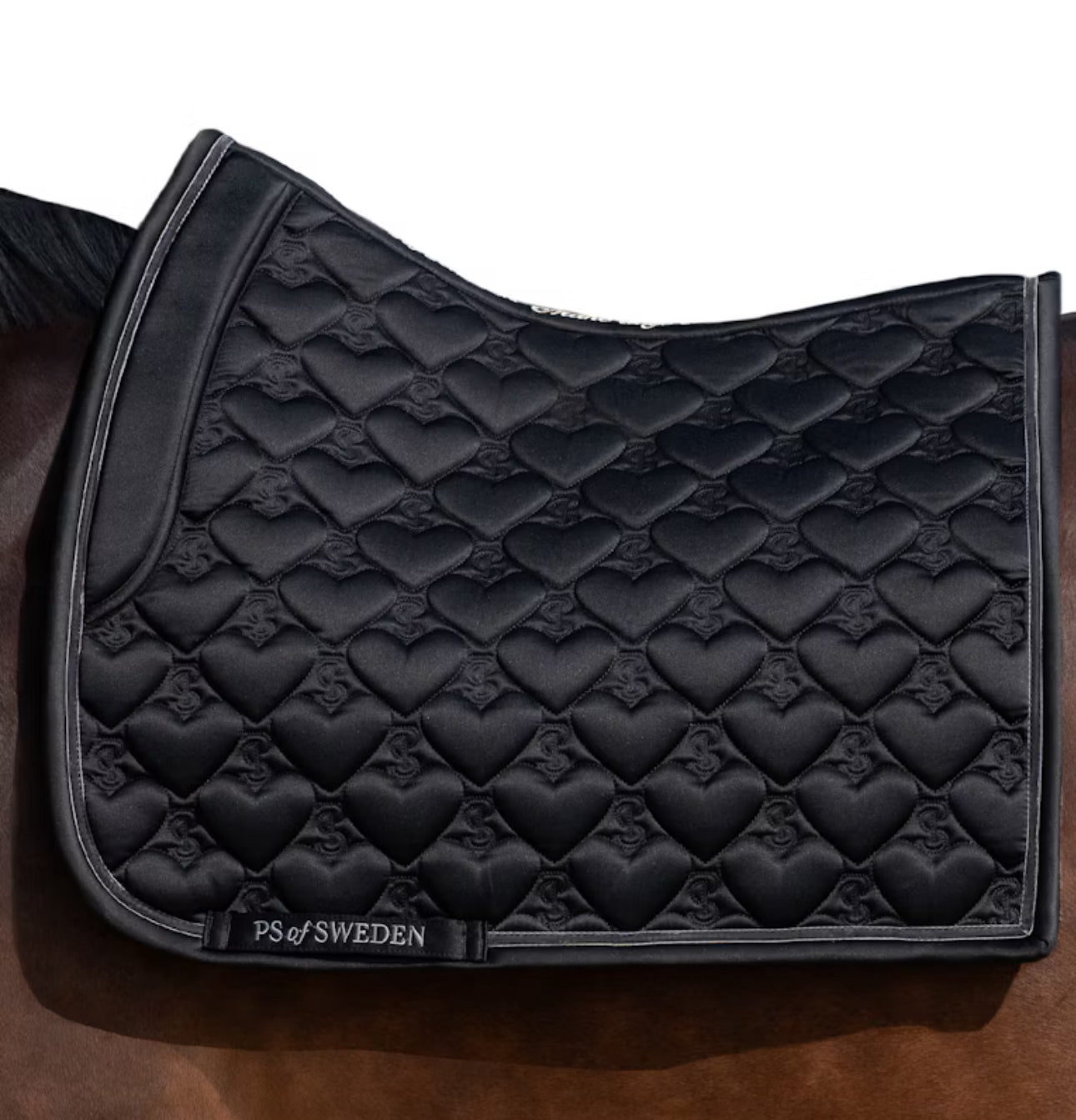 Limited edition anatomical saddle pad with eye catching beautiful heart shaped quilt. Features an unique personal love quote along the spine and decorative velvet ribbon along binding. * Anatomical design with extra space for withers height. * Stop cushions that prevent the saddle pad from sliding. * Soft mesh lining, allowing air and steam to pass through * Quick to dry after ride * Structure in shell fabric has dirt-repellent effect * Beautiful Heart shaped quilt with PS logo in it * Personal quote along spine * Decorative velvet ribbon along binding