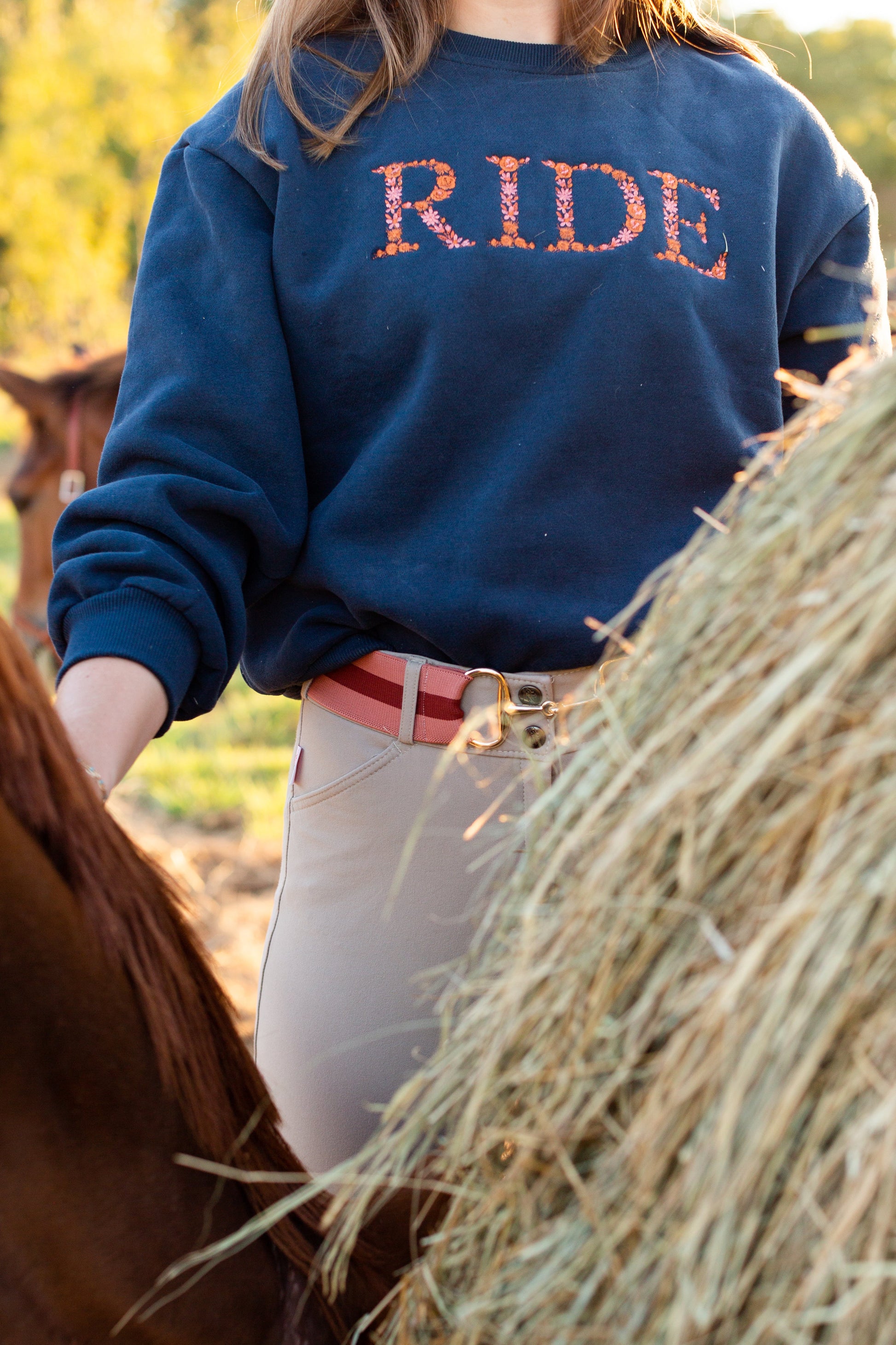 Navy "RIDE" Sweatshirt - Rust