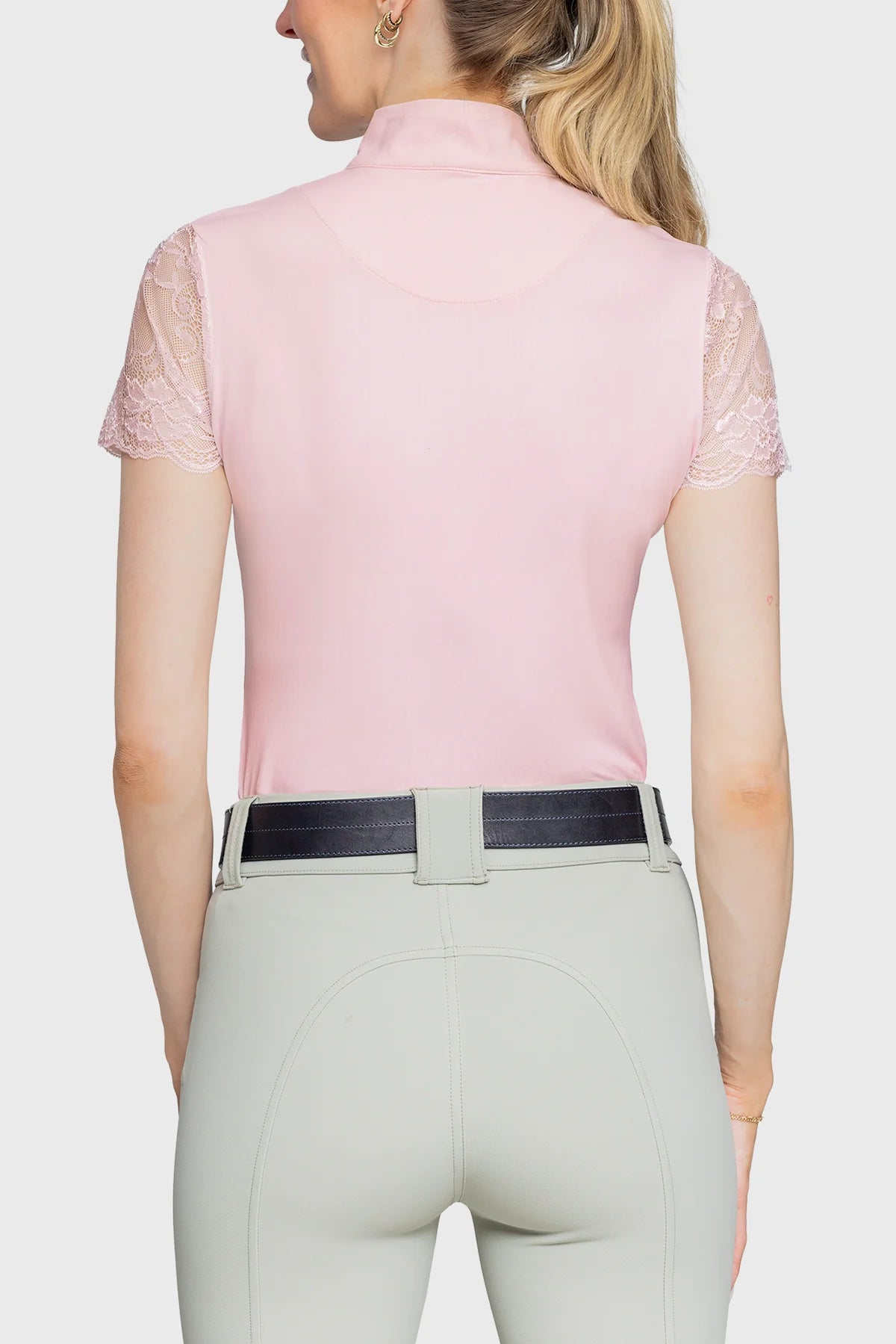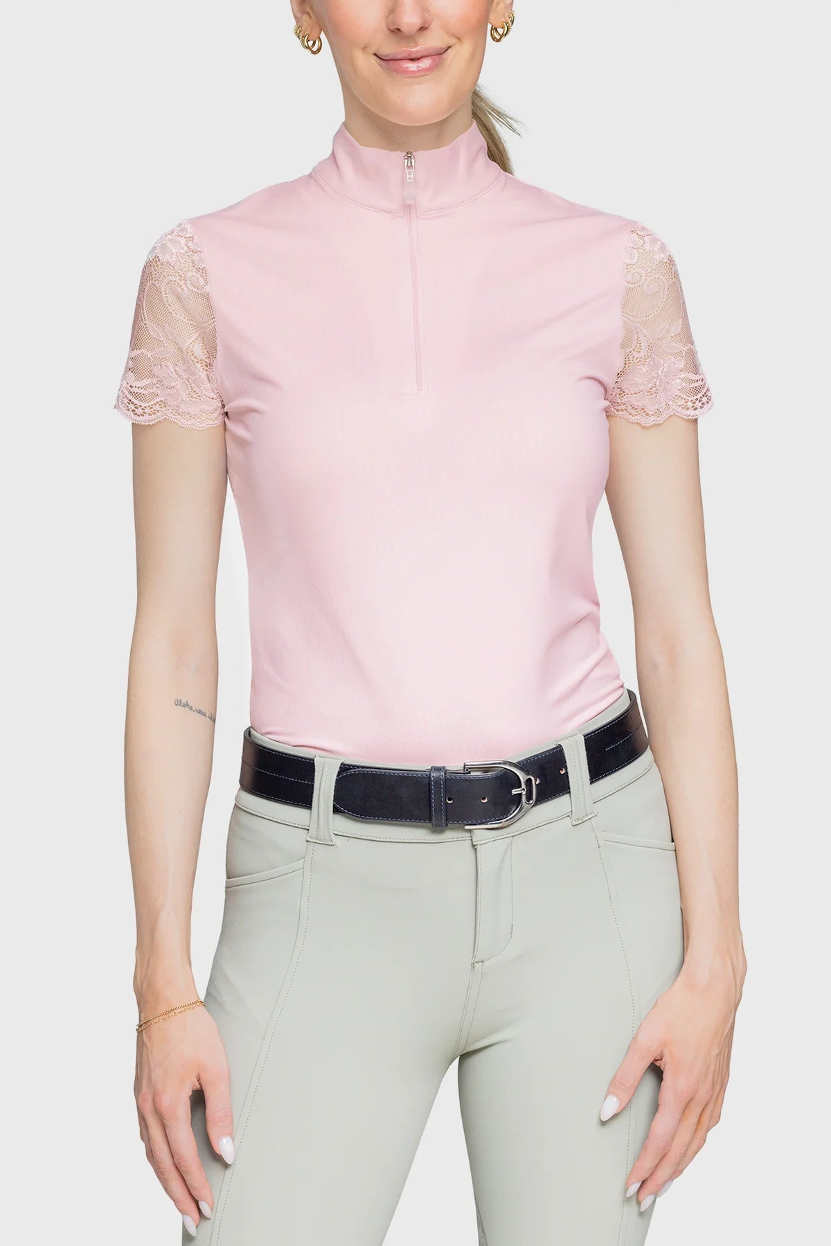 Galloon Lace Ballerina Pink Short Sleeve 1/4 Zip Sun Shirt