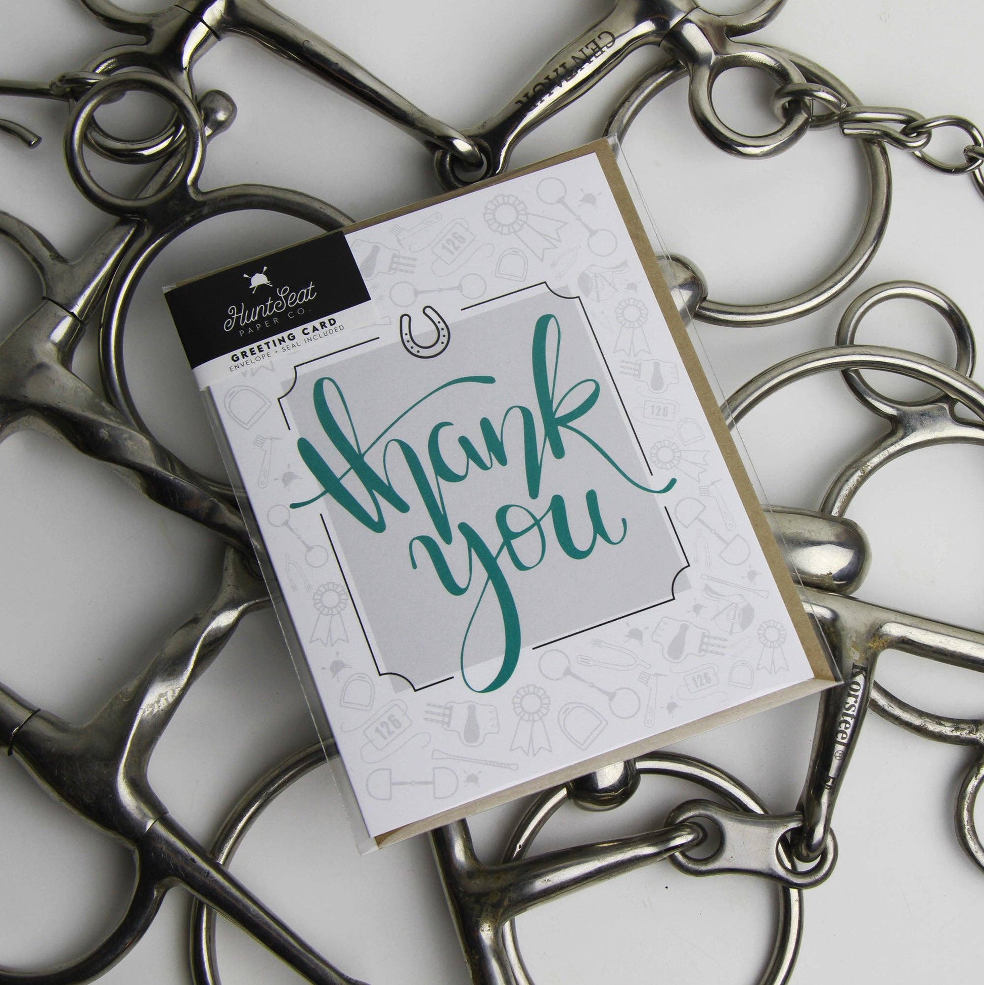 Equestrian Thank You Greeting Card. Thank your trainer, groom, vet, farrier or fellow horse lover with this horse themed greeting card.