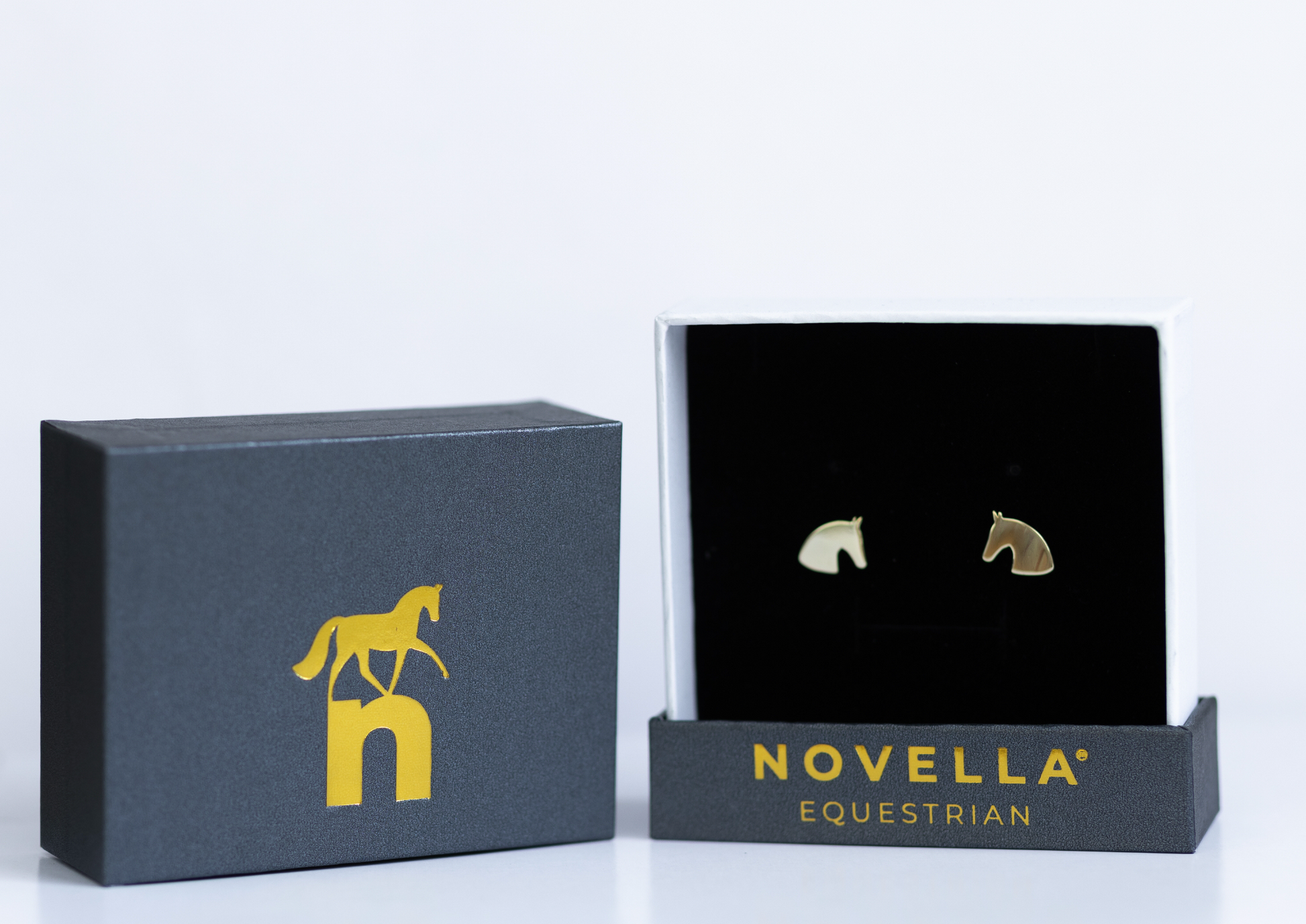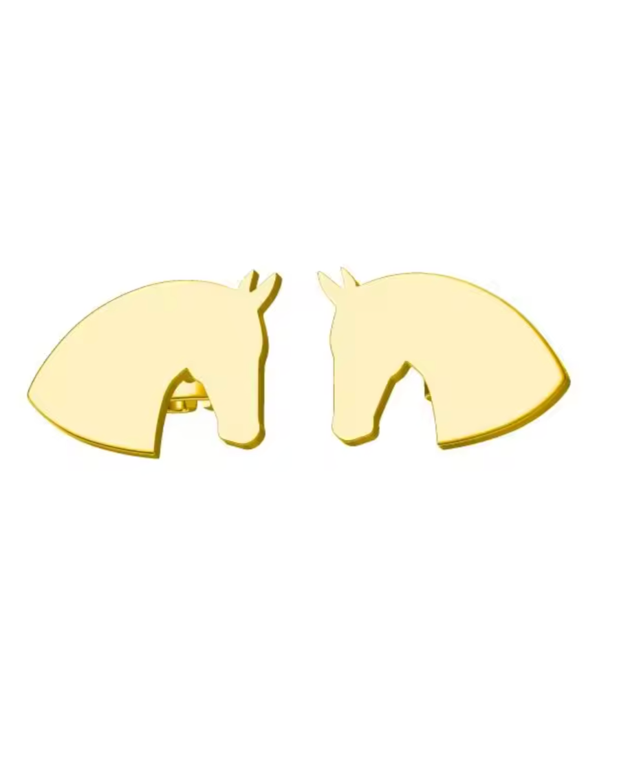 INSPIRED BY THE SIGNATURE NOVELLA GOLD ZIPPER, The Novella Signature Earring features an adorable Novella horse head to match all of your Novella styles. This adorable accessory really ties your entire Novella look together! 14k gold plated with sterling silver make-up, this is a quality earring perfect for showing, work, dressing up or cozying up.
