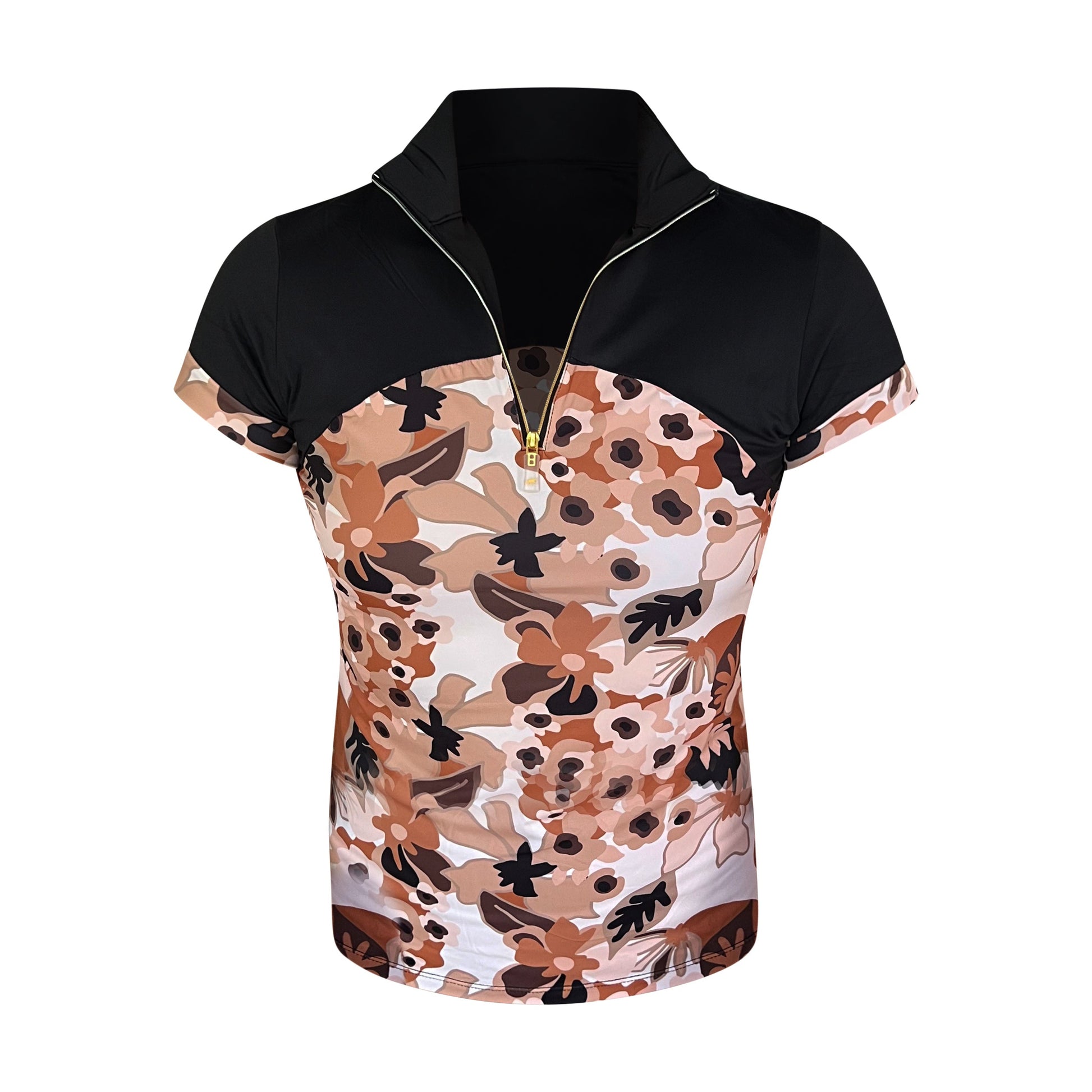 The Shawnee Short Sleeve design features a pink and neutral floral pattern that commands attention. This shirt features a mesh armpit and cap sleeve that you could easily wear under a show jacket. True to size but adapts to your body’s changes - this sun-shirt gives you a perfect fit every time. UPF 30+ for added ultra-violet protection.