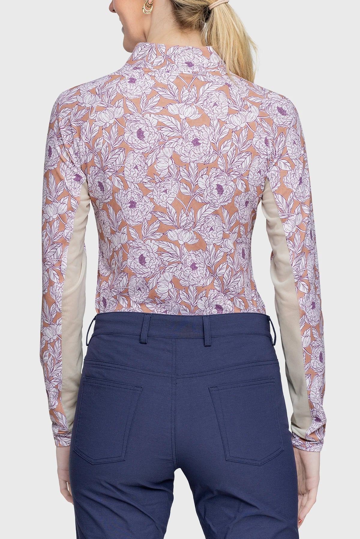 Terracotta, rich lavender and white combine to make our Tuscan rose print a crowd favorite. Long sleeves, ¼ zip, UPF 30, breathable power mesh and soft 4-way stretch fabric in a contemporary fit