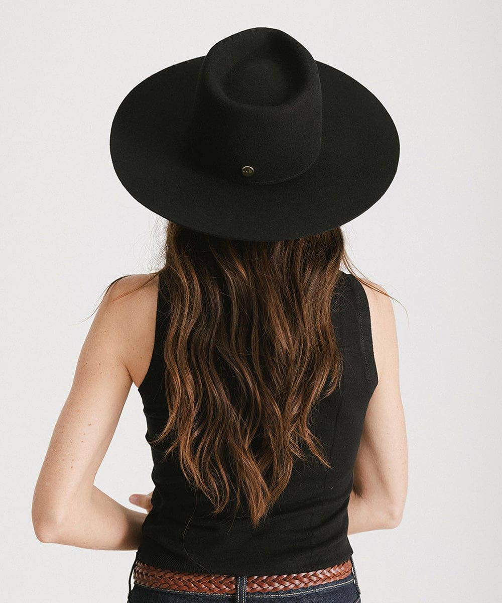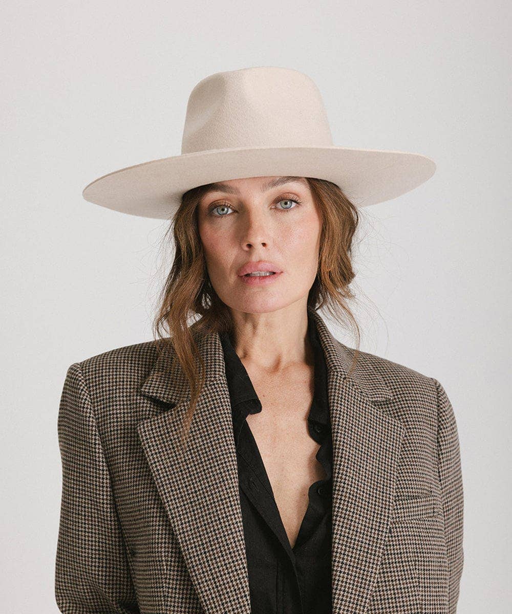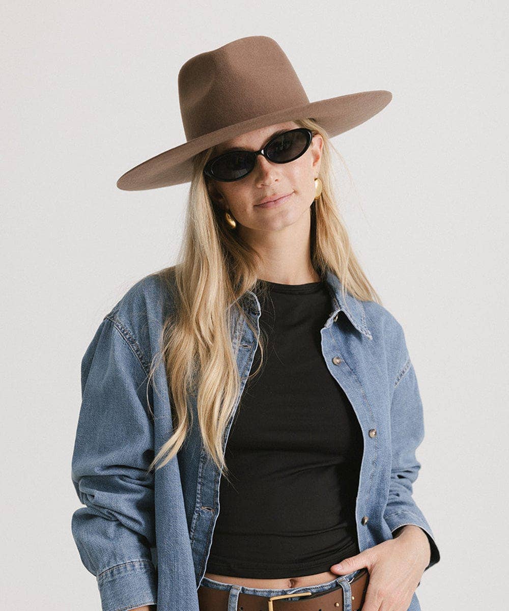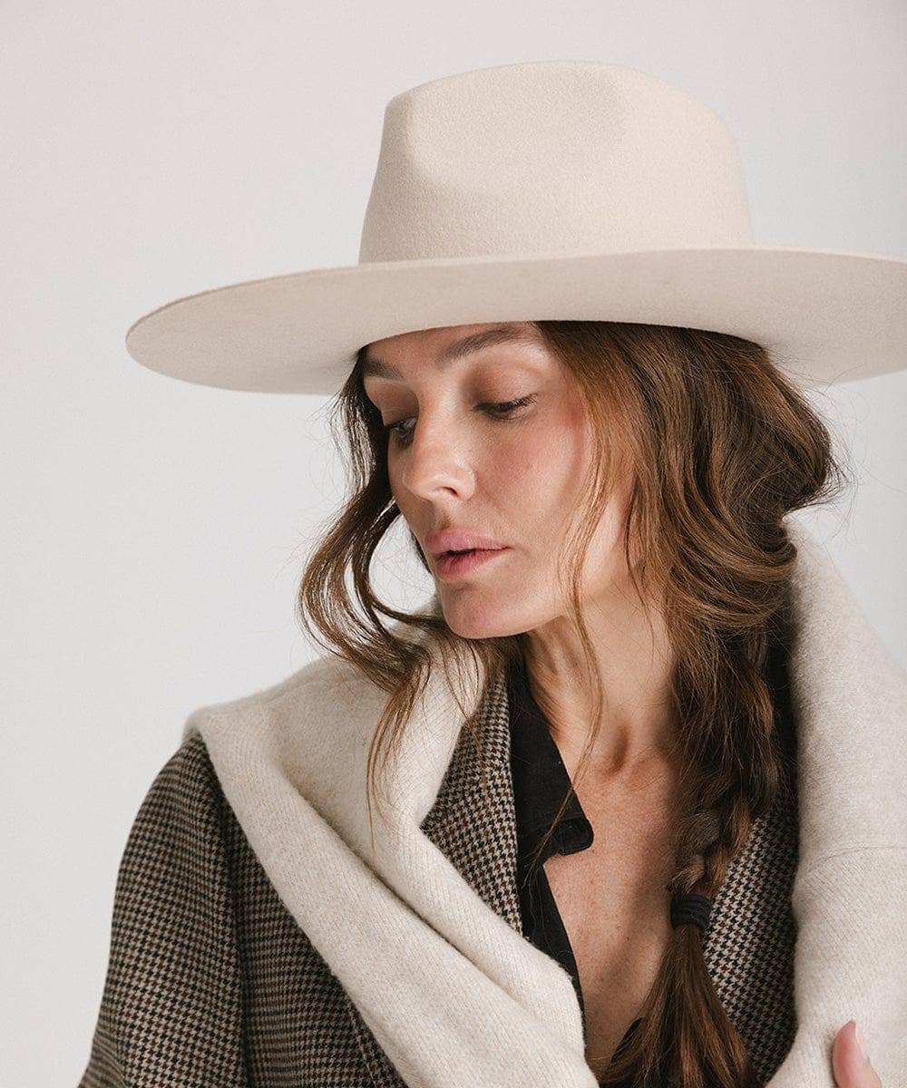 The Wesley is a great introduction to our Western collection + an easy way to infuse your everyday look with a bit of western flair. With her pinched fedora crown + wide, flat brim, the Wesley is a modern take on the traditional western hat.