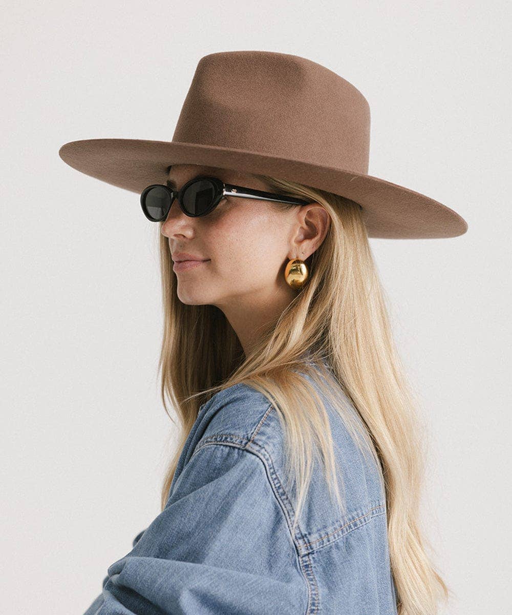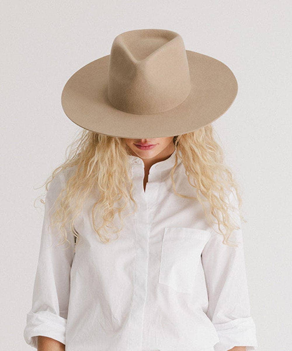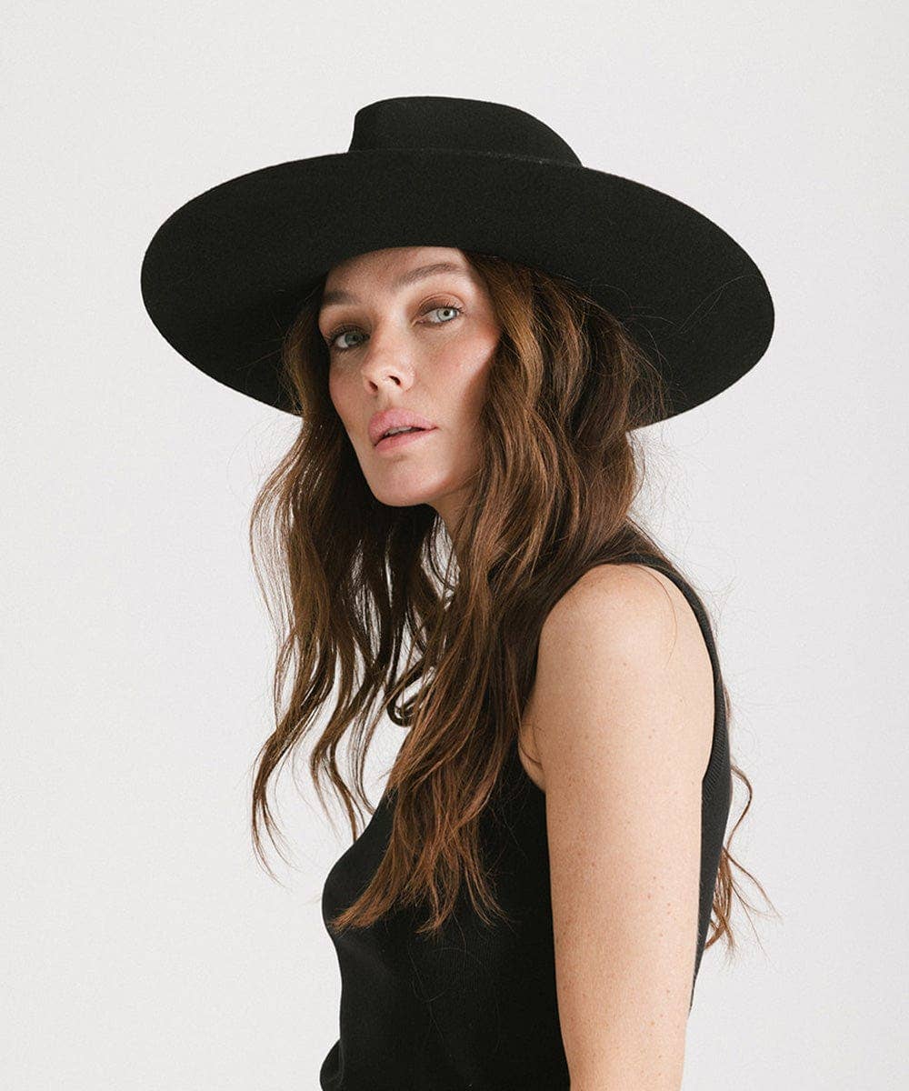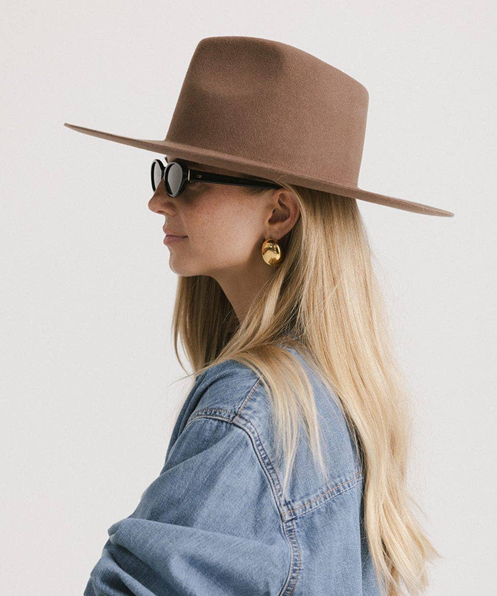 The Wesley is a great introduction to our Western collection + an easy way to infuse your everyday look with a bit of western flair. With her pinched fedora crown + wide, flat brim, the Wesley is a modern take on the traditional western hat.